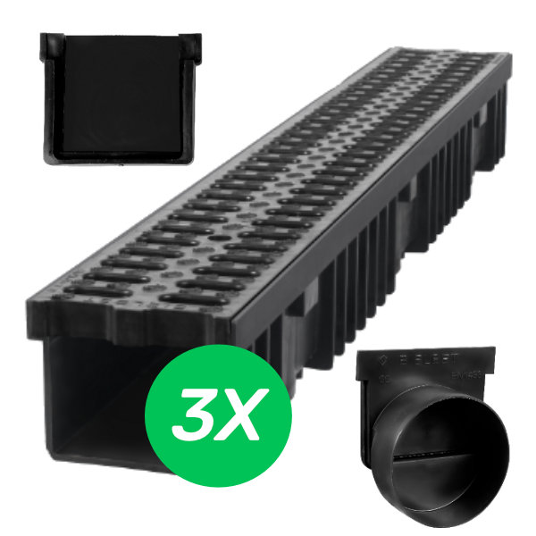 Kunststof Afvoergoten Set – 3 Meter + Eindkap + Zijuitloop